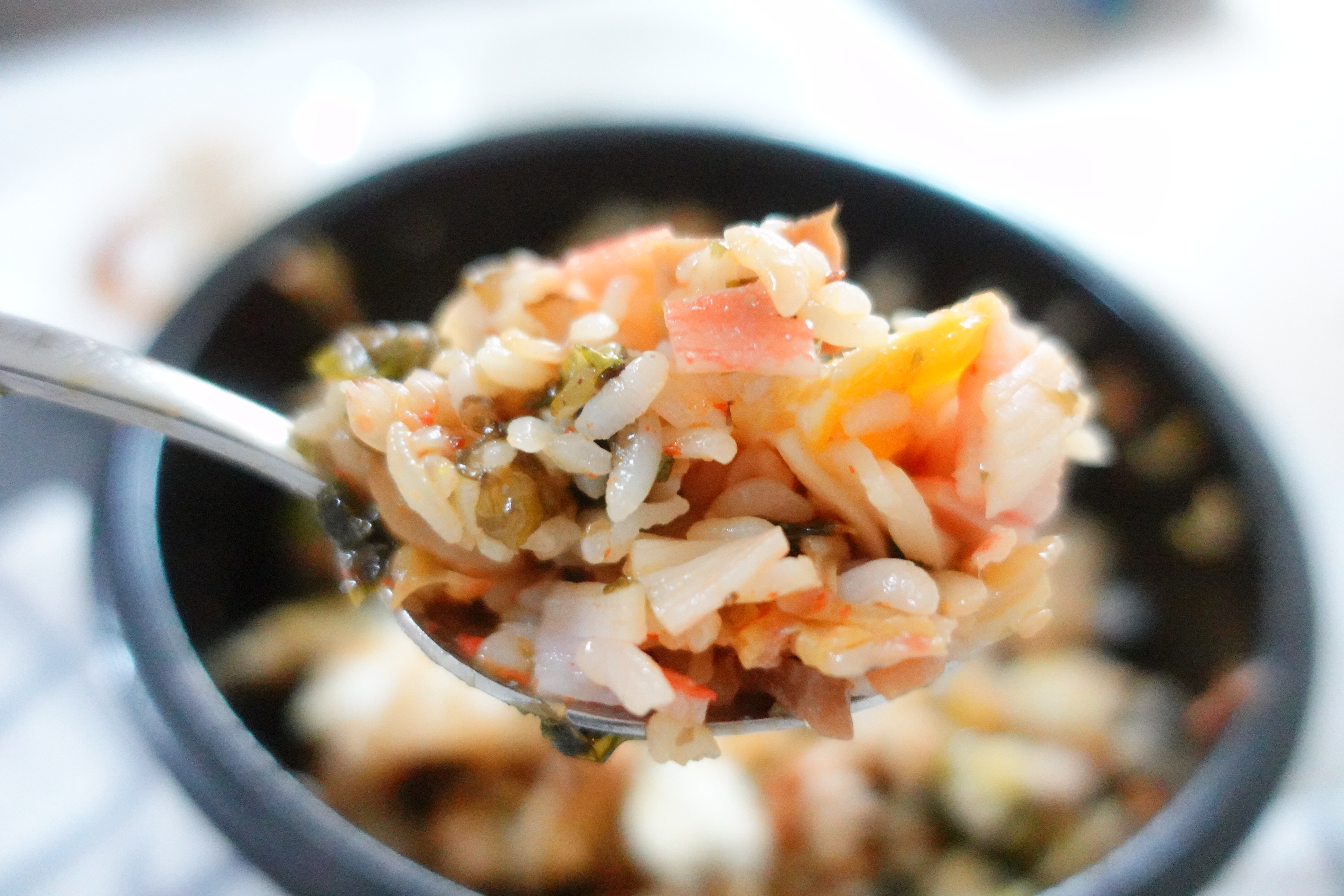 그냥 떠먹어도 되고 노란자위 올려서 먹어도 되고, 또 댁에 젓갈류가 있다면 매콤한 젓갈도 올려주는 것도 나쁘지 않다. 갈치젓을 좋아해서 냉동에 늘 몇 통씩 채워 넣고 먹고 싶을 때마다 꺼내먹곤 하는데 오늘도 돌솥비빔밥에 조금 얹혀서 먹어보니 역시 젓갈은 어디에 먹어도 빠져드는 매력이 있다.