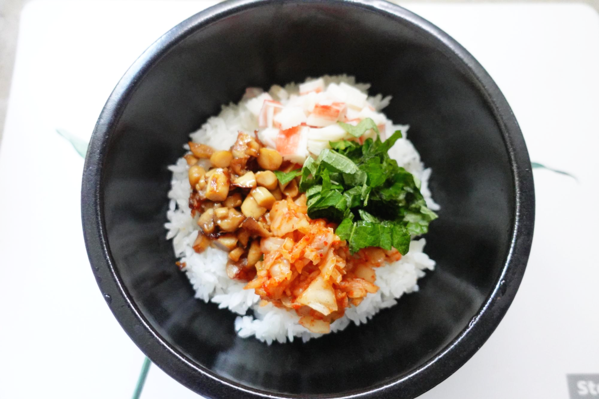 양념은 따로 하지 않아도 머쉬마루 버섯과 김치, 김가루가 이미 간이 되어있어서 비벼 드시기만 하면 되는 간단한 돌솥비빔밥이다. 돌솥비빔밥이란 의미는 그야말로 돌솥에 밥과 채소를 비벼 드시는 의미이닌까 전통적인 채소들을 가득 채우지 않아도 그릇만 있다면 집에 있는 재료로 따뜻하게 데워서 간단히 비벼 드실 수 있어서 좋다.