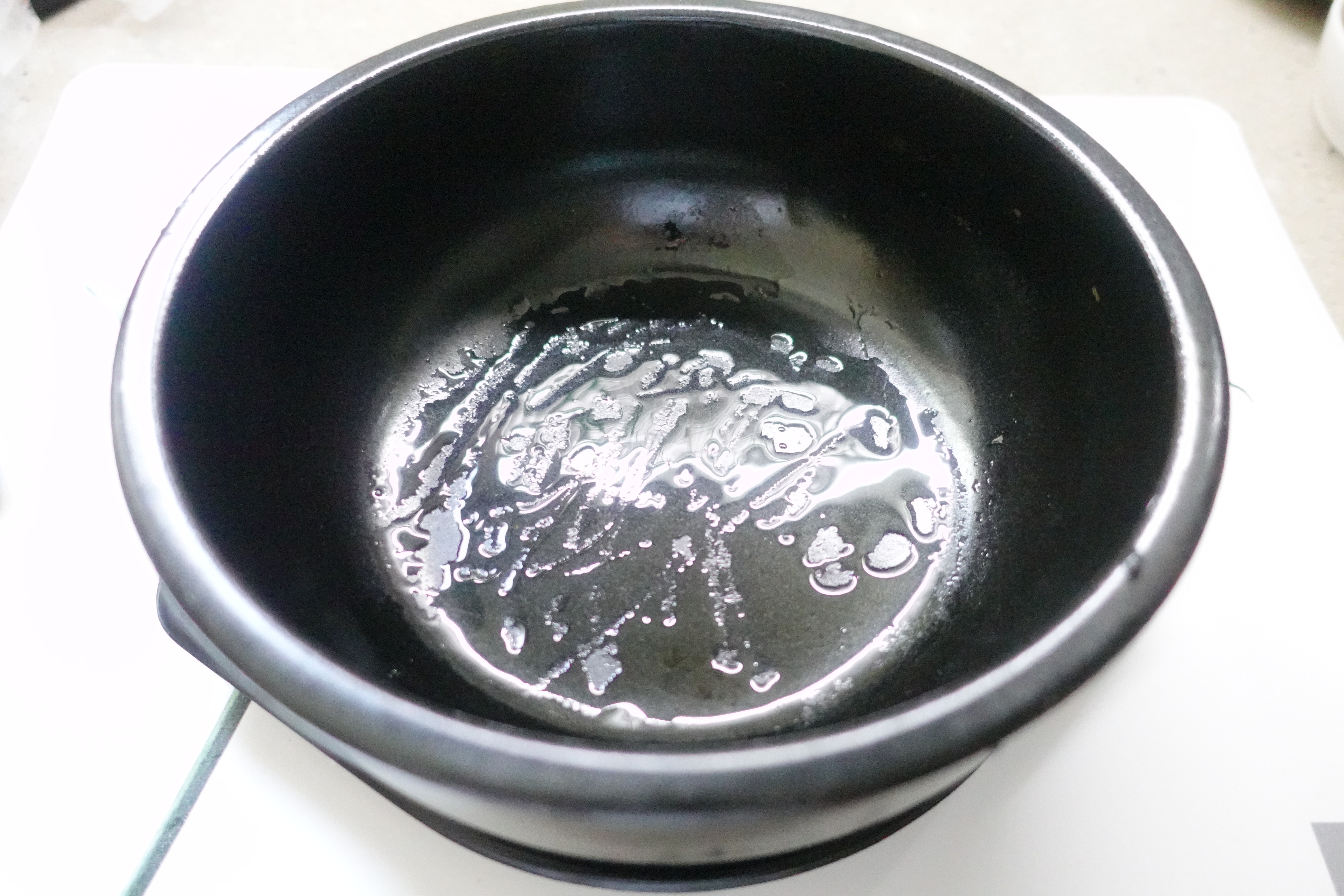 4. 가스레인지 또는 전기레인지에 올려 3~4분 찍찍~ 소리 날 때까지 가열시켜준다.